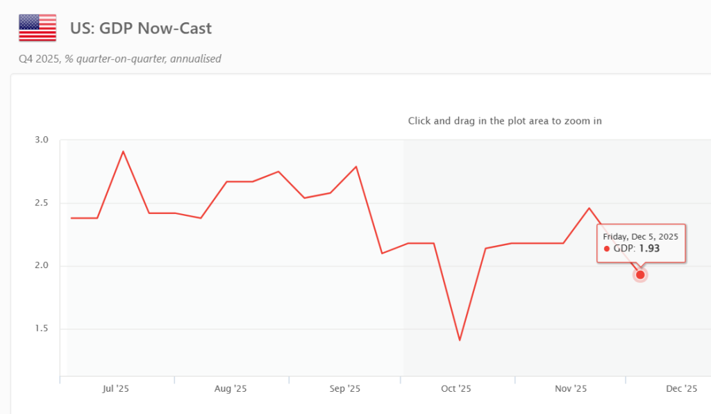 مدل پیش‌بینی Q4 فدرال رزرو نیویورک، رشد ۱.۷ درصدی را نشان می‌دهد که همچنان کندی شدیدی نسبت به های قبلی است (تا ۵ دسامبر).